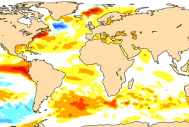Ebbene, la NOAA, l’agenzia Statunitense che si occupa di dinamiche oceaniche ed atmosferiche, ha appena annunciato che le acqua superficiali dell’Oceano Pacifico si stanno scaldando oltre le aspettative dando il via al fenomeno conosciuto come El Niño. La mappa conferma questa anomalia con i valori che si porteranno ben sopra le media climatiche (colore rosso in pieno oceano, davanti alle coste del Sud America).Riscaldamento delle acque superficiali delle acque del Pacifico (colore rosso)Riscaldamento delle acque superficiali delle acque del Pacifico (colore rosso).