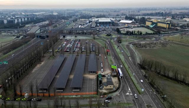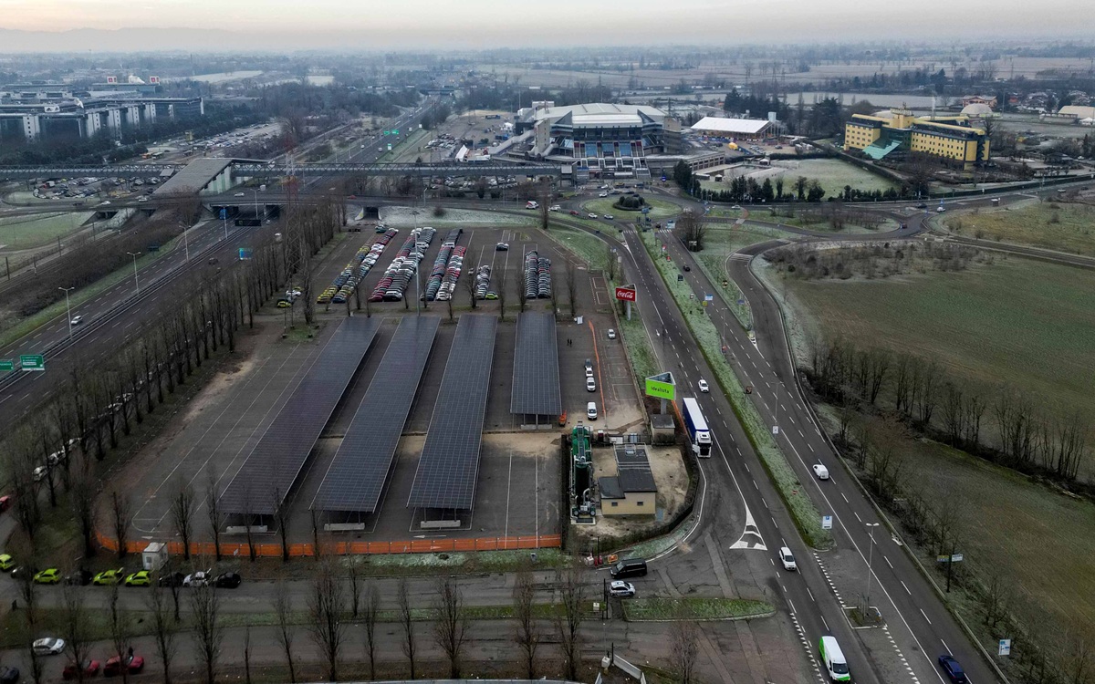 Installato un impianto fotovoltaico da 789 kWp sulle pensiline del parcheggio del Forum di Assago, una delle sedi ufficiali di Milano Cortina