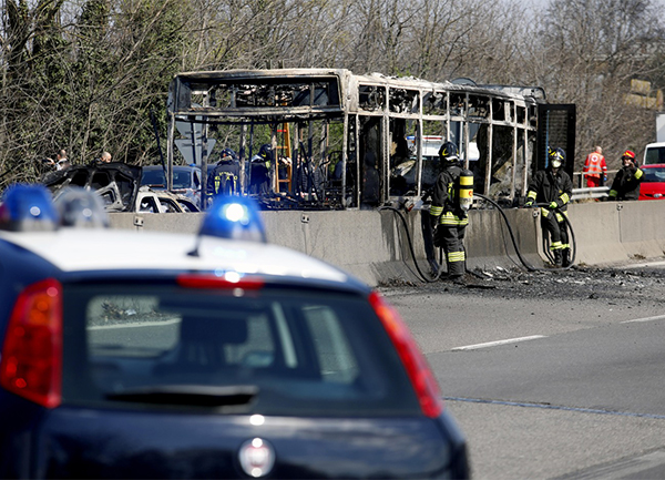 Un senegalese è stato fermato dai carabinieri sulla Paullese, nel Milanese: ha cercato di dare fuoco ad un autobus con a bordo una scolaresca
