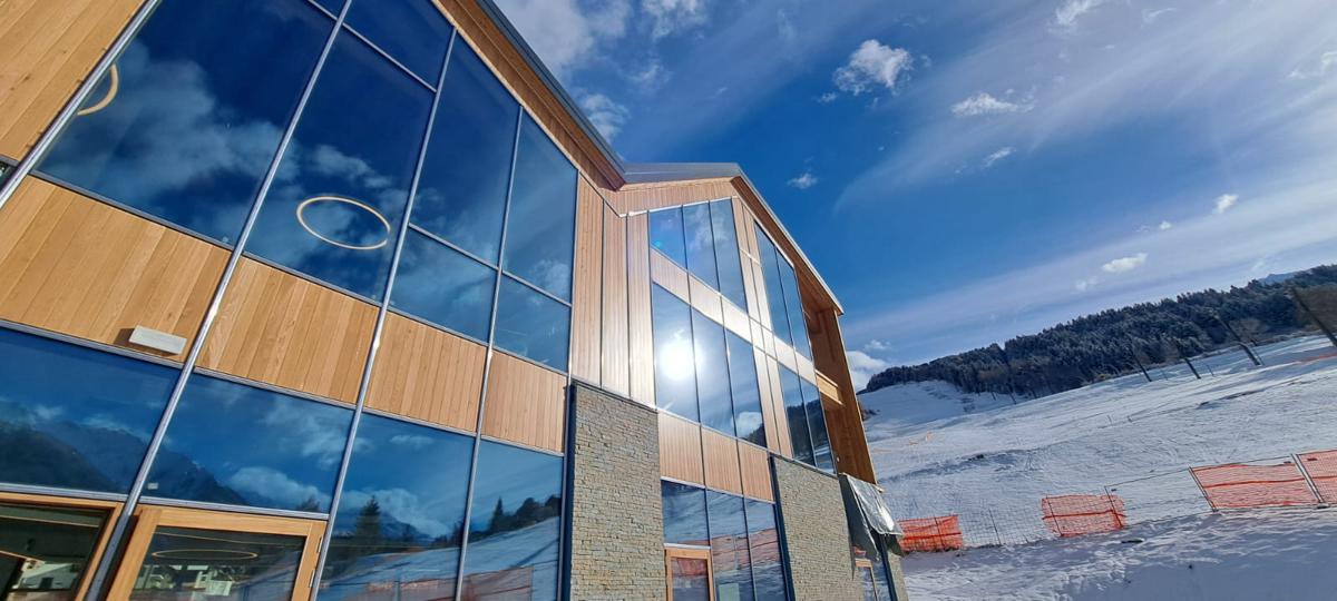 Gli esempi sono numerosi: l'hospitality lounge, che con il family lounge costituisce il fulcro dello Stadium, integra un potente impianto fotovoltaico. Ed il riscaldamento dell'edificio è garantito da una vicina centrale a biomassa. In termini energetici si tratta dunque di strutture progettate per ottenere la certificazione Near Zero Building. Un enorme valore aggiunto è dato inoltre dal fatto di aver utilizzato legno e pietra locali, materiali di pregio e garanzia di compatibilità ambientale. Si tratta di strutture importanti volumetricamente ma leggere, trasparenti. Non solo impattano il meno possibile ma sanno creare suggestivi panorami dialogando con l'ambiente circostante.