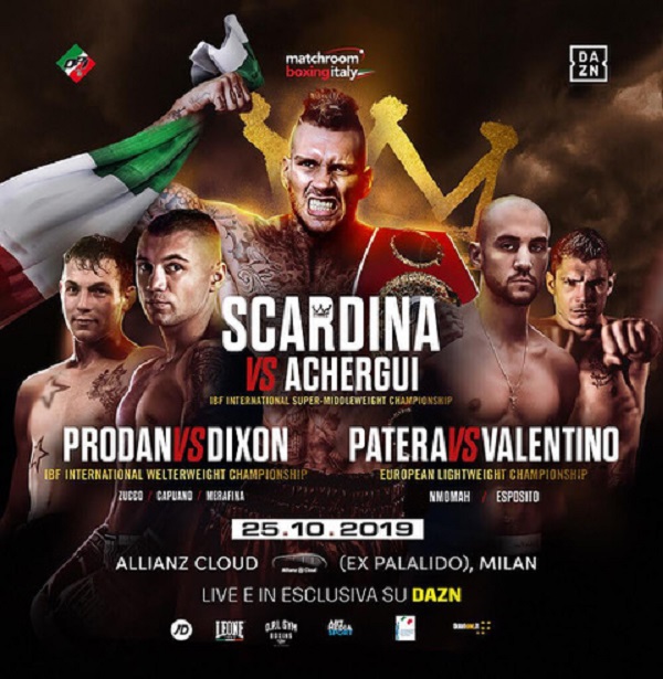 Venerdì 25 ottobre, all’Allianz Cloud (ex Palalido) di Milano, il campione internazionale IBF dei pesi supermedi Daniele Scardina difenderà il titolo contro il campione del Belgio Ilias Achergui sulla distanza delle 10 riprese. Diretta su DAZN a partire dalle 19.30 in Italia, Stati Uniti, Canada, Germania, Austria, Svizzera e Spagna. Sarà la seconda difesa per Scardina che ha vinto il titolo lo scorso 8 marzo contro il finlandese Henri Kekalainen al Superstudio Più di Milano e lo ha difeso il 28 giugno all’Allianz Cloud contro Alessandro Goddi. In entrambe le occasioni, Scardina ha vinto ai punti. Nato a Rozzano, alle porte di Milano, il 2 aprile 1992, professionista dal settembre 2015, residente a Miami Beach, in Florida, USA, Daniele ha combattuto in Italia (6 volte), Repubblica Dominicana (7 volte), Stati Uniti (3 volte), e Haiti ottenendo 17 vittorie consecutive, 14 prima del limite. Il 26enne Ilias Achergui ha disputato 18 incontri con un bilancio di 13 vittorie (6 prima del limite), 4 sconfitte e 1 pari. E’ diventato campione del Belgio dei pesi supermedi e dei pesi mediomassimi. Anche lui ha una vittoria ai punti sul finlandese Henri Kekalainen: il 26 settembre 2015, in Belgio, lo ha battuto per il titolo giovanile dei pesi medi WBC.