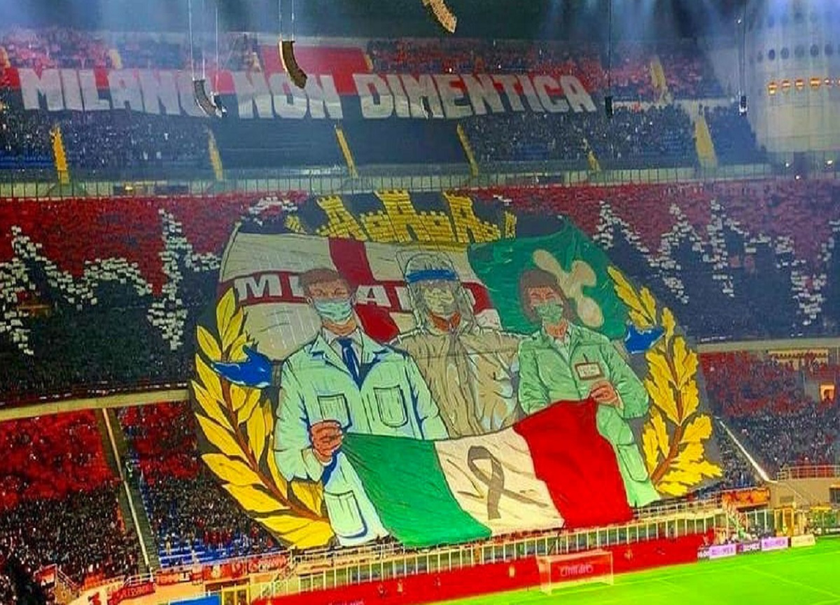 Derby, striscione della Curva milanista dedicato agli eroi della pandemia