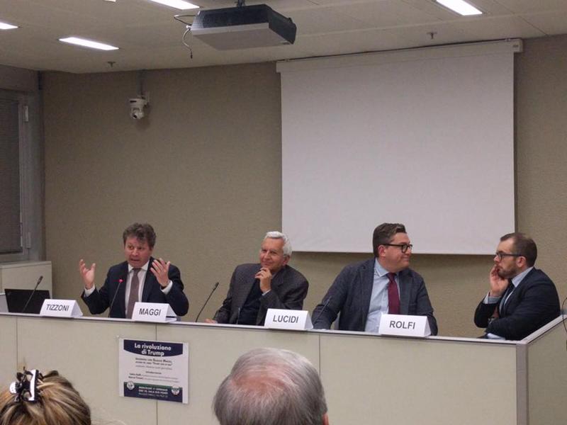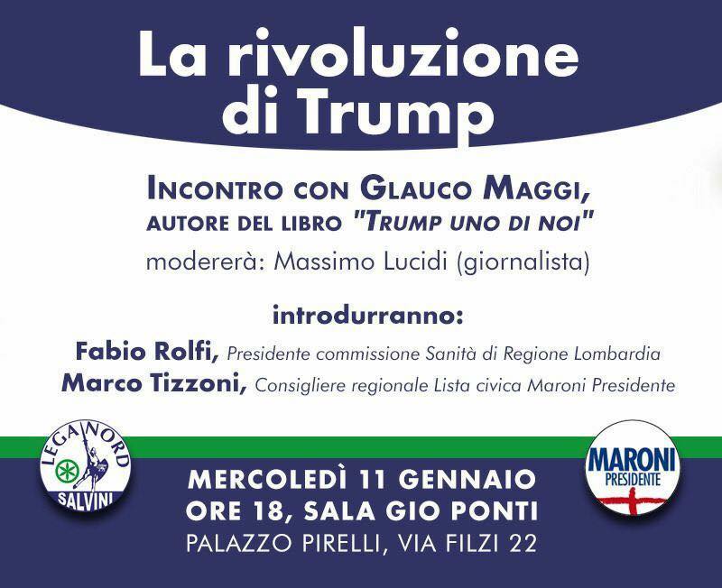 E' il caso del convegno organizzato ieri a Milano, al Pirellone, dal consigliere regionale Marco Tizzoni, della lista civica Maroni presidente, e da Fabio Rolfi, della Lega, presidente della commissione Sanità in regione Lombardia. L'occasione era quella di presentare il libro “Trump, uno di noi”, scritto dal giornalista Glauco Maggi, che corrisponde da New York per i quotidiani La Stampa e Libero. Per ora Tizzoni esclude che l'incontro sia stato prodromico a un progetto politico in fieri, orientato su quelli che sono i capisaldi della politica trumpiana. Ma in verità, a Milano, qualcuno che sta pensando a questo progetto, e, anzi, lo sta preparando concretamente c'è già.