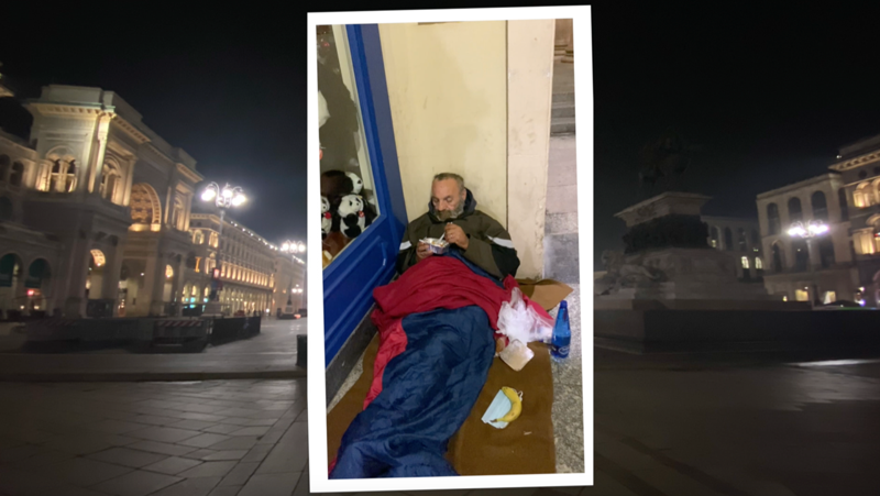 Sono numerosi i senzatetto che popolano le strade di una Milano pesantemente colpita dell'emergenza sanitaria
