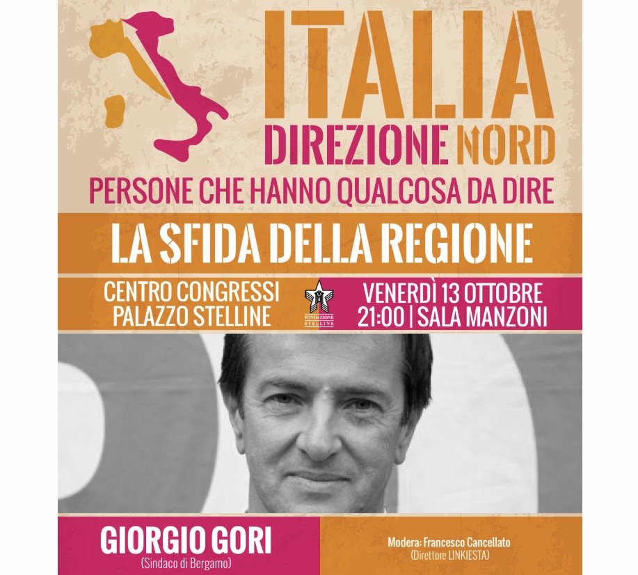 Domani alle 21, Francesco Cancellato e Guido Bandera dialogano con il sindaco di Bergamo, Giorgio Gori, competitor per le prossime elezioni regionali lombarde contro l'attuale Governatore, Roberto Maroni.