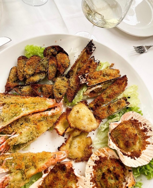 Il menu è davvero ricco e adatto ai palati più esigenti. Gli antipasti spaziano dal salmone alla spada affumicati, dal mosciame di tonno con sedano al misto in gratin, dal granchio reale al polipo con patate. Non mancano poi gli scampi alla catalana, il guazzetto di scampi e di calamari, il carpaccio di pesce, le capesante gratinate, le blasonate ostriche Belon e Fine de Claire e i tartufi di mare.