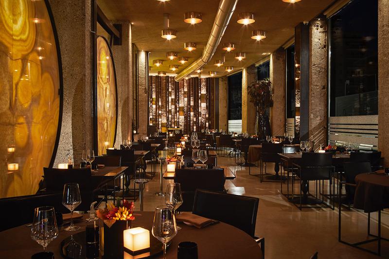 La cucina di Gong trova spazio in un luogo pensato per vivere appieno un’esperienza immersiva. Grandi gong di onice retroilluminato, arrivati direttamente dal Messico, incorniciano uno spazio elegante e dai toni scuri, che di sera acquista un mood particolarmente romantico.