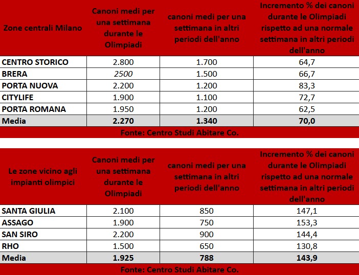 Mancano tre mesi all’avvio delle Olimpiadi Invernali e il mercato immobiliare milanese mostra già segnali di forte fermento: secondo l’analisi di Abitare Co. - società specializzata nell’intermediazione immobiliare - gli affitti brevi per un appartamento per un massimo di quattro persone nelle zone centrali di Milano più soggette al turismo (Centro Storico, Brera, Porta Nuova, Citylife, Porta Romana) e nei quartieri chiave dei Giochi Olimpici, vicini agli impianti che ospiteranno le competizioni (Santa Giulia, Assago, San Siro, Rho), aumentano in media durante le Olimpiadi del +102% rispetto a una settimana senza eventi. Tra le zone, la crescita maggiore si registra ad Assago (+153%), mentre i canoni più alti nel Centro Storico (2.800€ a settimana). Una tendenza confermata anche dall’analisi del turismo internazionale: nel periodo compreso tra il primo e il 21 febbraio 2026, infatti, si prevede un aumento del 160% degli arrivi dall’estero verso il Nord Italia rispetto allo stesso periodo del 2025 (Fonte Visa Consulting & Analytics).