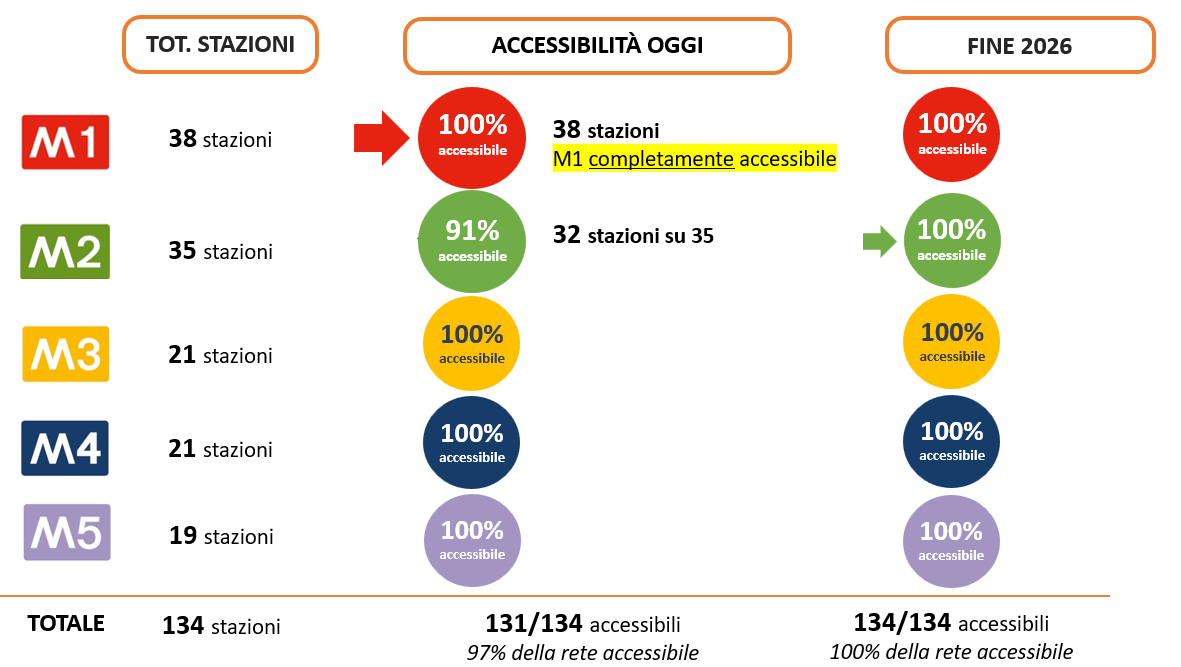Obiettivo raggiunto per l’imponente piano di cantieri che era stato avviato da Atm insieme al Comune di Milano per rendere interamente accessibile la rete metropolitana milanese nel 2026 anche sulle linee più datate, per rispondere così alle esigenze dei cittadini e dei visitatori, in tempo utile per i Giochi Olimpici e Paralimpici Invernali.