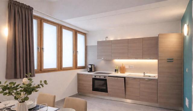 L’impiego del legno rigenerato Saviola ha inoltre permesso di risparmiare 103 alberi, un risultato concreto che testimonia l’attenzione delle aziende coinvolte verso l’ambiente. Grazie alle finiture di pregio ispirate ai legni delle alte quote, gli interni acquisiscono un’estetica moderna, naturale e calorosa.
