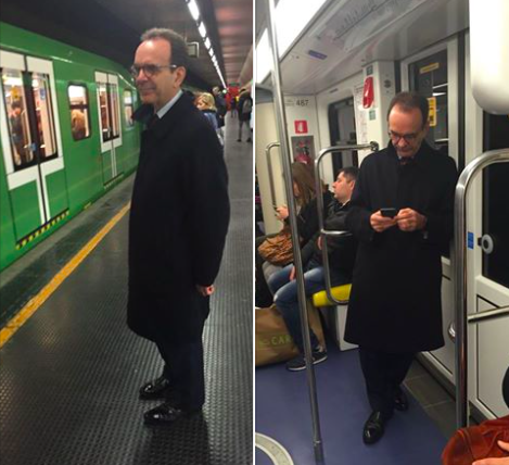E poi, a seguire, delle belle foto di Stefano Parisi che si dirige verso 7 Gold, alla trasmissione Aria Pulita. In metropolitana, sulla verde. 7 Gold, infatti, è fuori città, ad Assago, in via Idiomi 1/45. E il numero è visibile anche in una seconda foto, pubblicata da Silvia De Marino (una militante del Pd di Milano) sempre su Facebook. Che però ritrae il candidato sindaco del centrodestra montare in auto, su una Audi grigia. Il commento è in formato Twitter: “Parisi, ma non ti muovevi con i mezzi? #inciampipeggiori”. Insomma, botta e risposta.