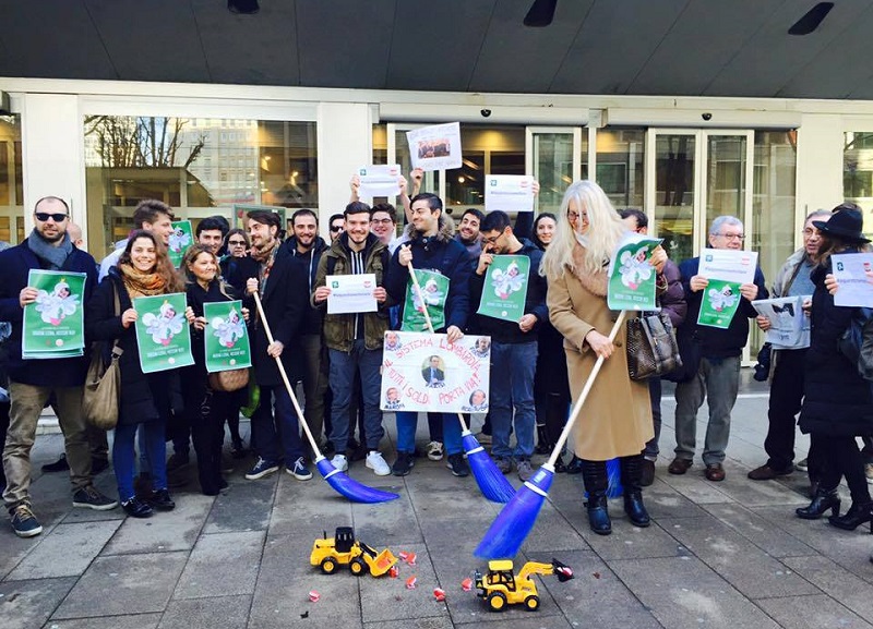 I GIOVANI DEMOCRATICI E LA "QUESTIONE MOLARE" - Fuori dal palazzo regionale, in mattinata si è svoto il flash mob dei giovani democraticii, che hanno voluto sollevare la "questione molare". 'Armati' di scope da befane che fanno eco alle ramazze promesse da Roberto Maroni, sotto gli slogan 'Nuova Lega, vecchi vizi' e 'il sistema Lombardia tutti i soldi porta via', i giovani del Pd hanno manifestato contro Maroni e la gestione della Regione, circondati da ruspe e dentiere giocattolo a richiamare lo scandalo degli appalti truccati nel settore odontoiatrico. "Maroni - ha detto il segretario metropolitano del Pd, Pietro Bussolati - deve prendere atto che Regione Lombardia e' costantemente piena di scandali e questo succede perche' non e' riuscito a fare quello che aveva promesso: fare pulizia all'interno della Lega e di Regione Lombardia. Oggi noi manifestiamo come giovani democratici perche' deve rendere atto politicamente di questo. Ci sono troppi fatti gravi - ha concluso - che riguardano la gestione di Regione Lombardia, sono meglio le dimissioni, andare al voto e sottoporsi al giudizio dei cittadini". Il presidio di protesta dei giovani democratici e' stato inscenato di fronte al Pirellone dove oggi si riunira' il Consiglio regionale, la cui seduta ha tra i diversi punti all'ordine del giorno anche la mozione di sfiducia al presidente della Regione.