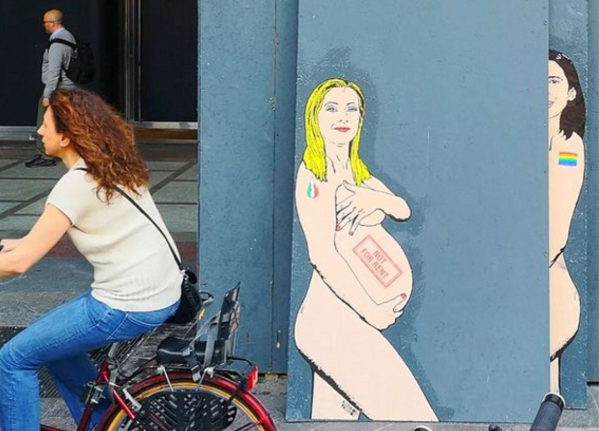 Schlein e Meloni incinte e senza vestiti: rimosso il murales a Milano