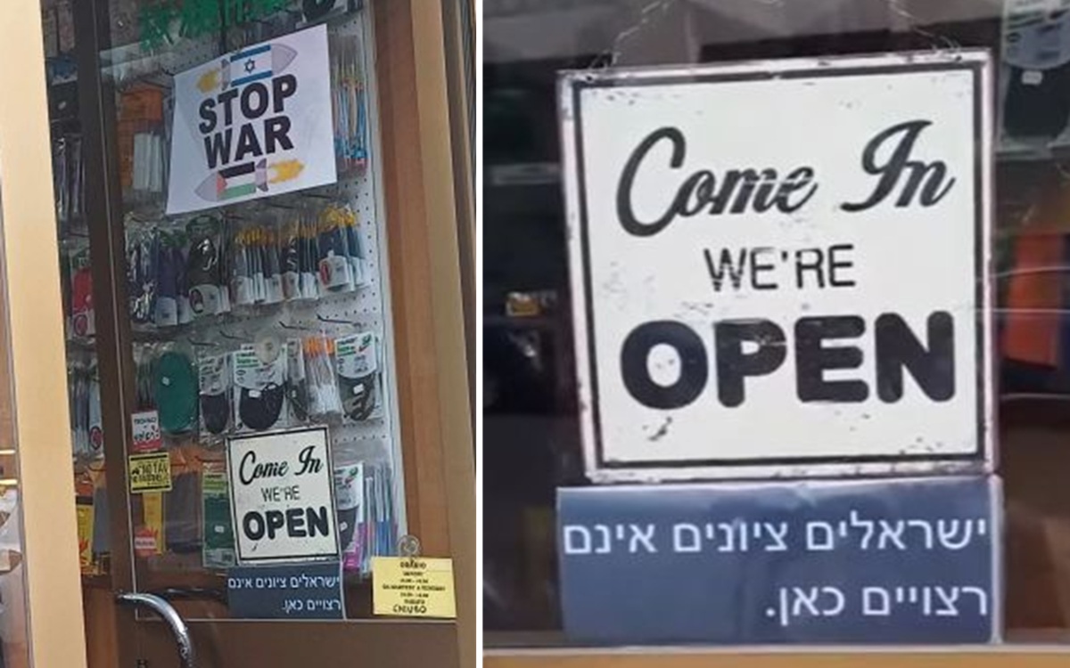 Nel frattempo, il titolare della merceria ha rimosso la scritta, spiegando: “L’abbiamo tolta per la nostra sicurezza. È stata interpretata male e mi dispiace molto, mi fa arrabbiare. Non siamo antisemiti, né razzisti, e non vogliamo essere strumentalizzati. Siamo contro questa strage, per la pace”.
