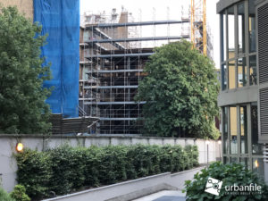L’eco-mostro, come spesso vengono chiamati questi edifici incompleti, ai passanti è pressoché invisibile perchè si trova in un lotto all’interno, coperto dalla cortina di edifici circostanti.