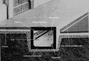 Ci siamo spesso chiesti come mai non vengano utilizzati dei cunicoli tecnologici, dei cunicoli in trincea coperti da lastre in cemento che contengano tutti i servizi necessari alla città: luce, fibra, condotte dell’acqua e altro ancora in modo che, all’occorrenza, con un semplice metodo che contempli una sigillatura apposita per evitare sabotaggi o altro, si possano aprire per essere sostituiti o lavorati, come se fosse una specie di tombino continuo.