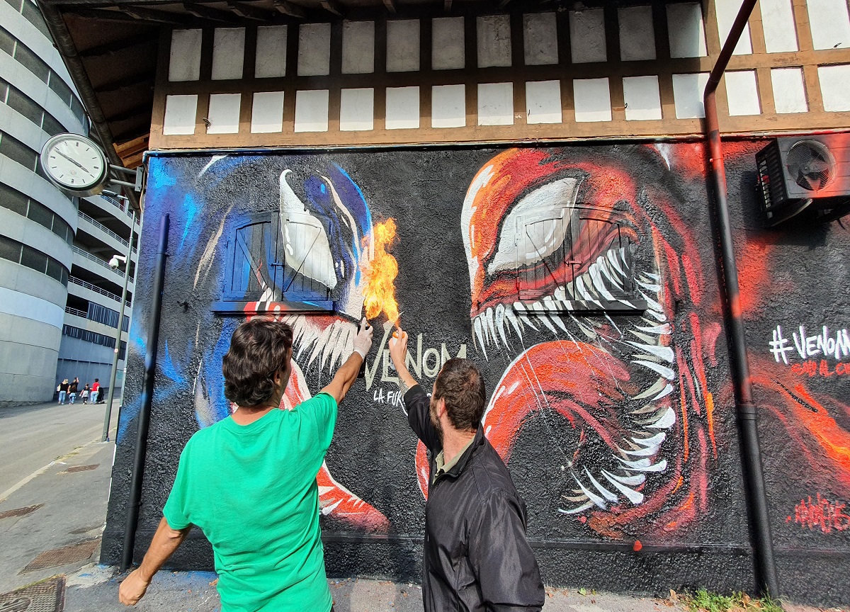 Sul muro vicino a San Siro che già aveva ospitato l'opera dedicata a Ibrahimovic e Lukaku, il murales per il lancio del nuovo film Venom vs. Carnage
