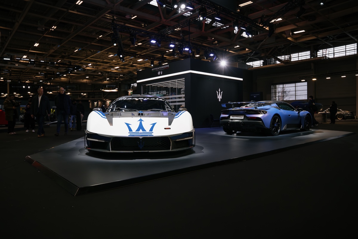 Il lato più radicale prende forma nella Maserati MCXtrema, una presenza scenica pura. Linee tese, livrea “Corse” su misura, numerazione personale sulla carrozzeria: una hypercar da pista che sembra uscita da una galleria d’arte contemporanea dedicata alla velocità. È qui che tecnologia e artigianalità italiana si incontrano senza compromessi.