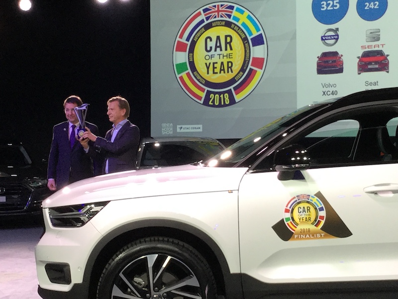 Nonostante la concorrenza agguerrita (in nomination c’erano Alfa Romeo Stelvio, Audi A8, BMW Serie 5, Citroen C3 Aircross, Kia Stinger, Seat Ibizia e Volvo XC40) la Volvo XC40 ha vinto con 325 voti, seguita da Seat Ibiza (voti 242) e da Bmw Serie 5 (voti 226). Hanno votato 60 giornalisti del settore Automotive, provenienti da 23 Paesi.