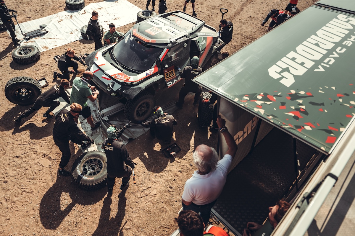Le prestazioni in pista sono il frutto di un intenso lavoro di sviluppo dietro le quinte. La Dacia Sandrider in configurazione 2026 si presenta notevolmente evoluta rispetto al modello d'esordio. Oltre alla nuova livrea che dà più spazio all'arancione, le modifiche sostanziali riguardano la riduzione del peso e l'ottimizzazione dell'impianto di raffreddamento, cruciali nelle torride condizioni saudite. Migliorata anche la visibilità e il comfort per l'equipaggio, fattori non trascurabili in tappe che superano le quattro ore di guida al limite. Il veicolo continua a essere spinto dal carburante sostenibile fornito da Aramco e si affida alla robustezza delle coperture BFGoodrich.