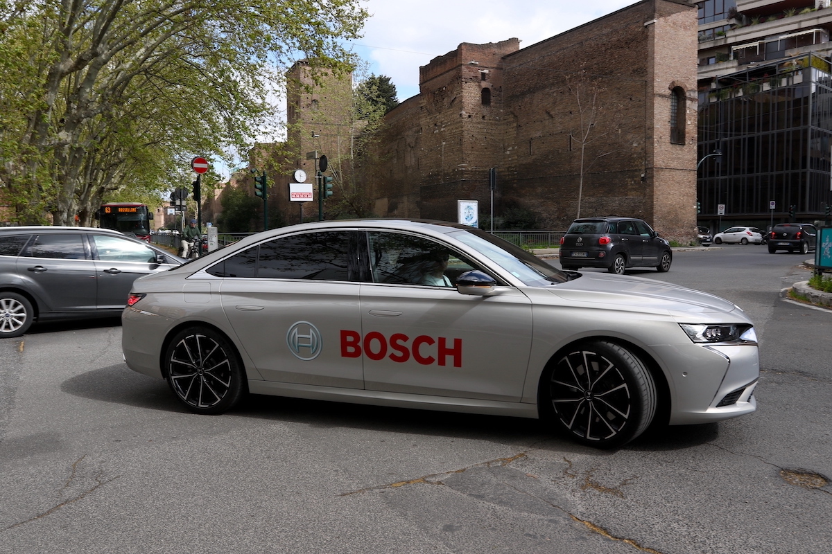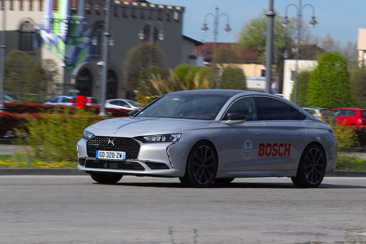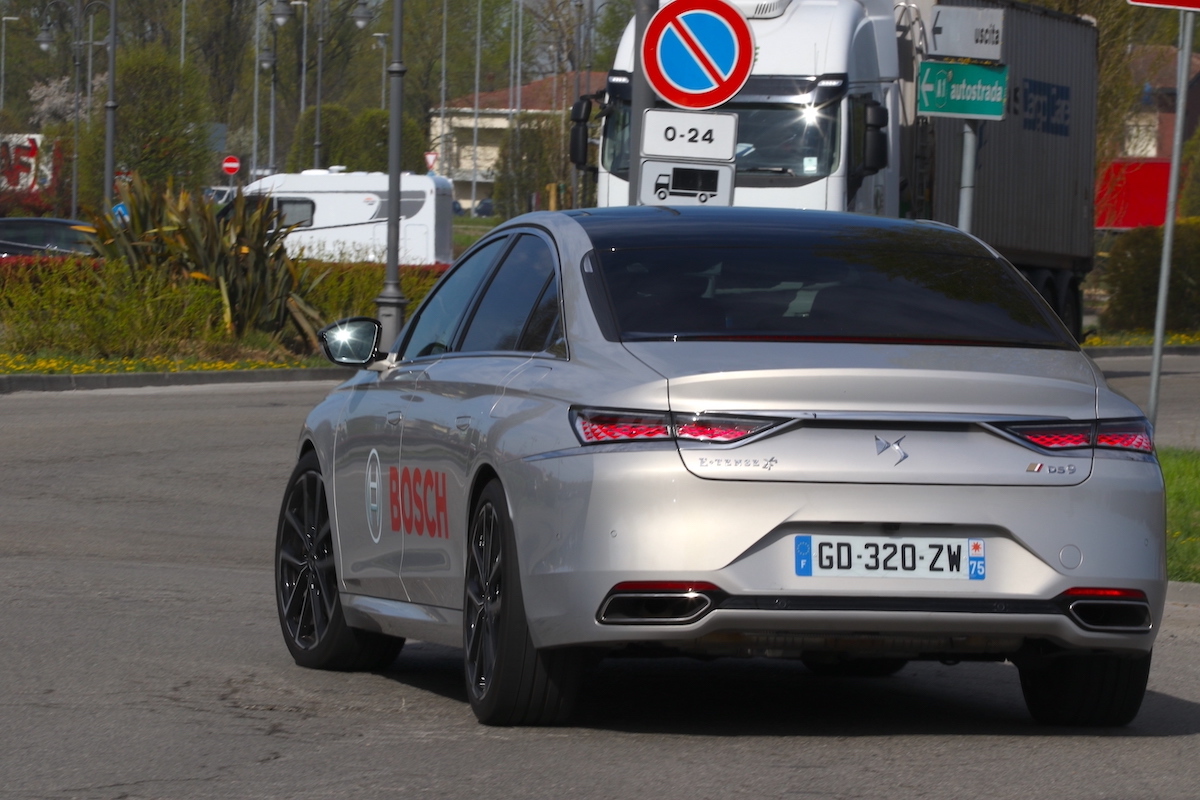 Partiamo per il nostro viaggio dalla sede italiana del supplier Bosch che da anni fornisce tecnologie all’avanguardia alle vetture del gruppo Stellantis. Siamo molto vicini all’autostrada, così impostiamo subito la modalità E-Safe per conservare corrente per la parte finale del nostro viaggio. Il comportamento dinamico è da autentica Gran Turismo sportiva, divertente ma al contempo comodissima: la DS 9 fa capire subito che le lunghe distanze sono il suo terreno d’elezione.