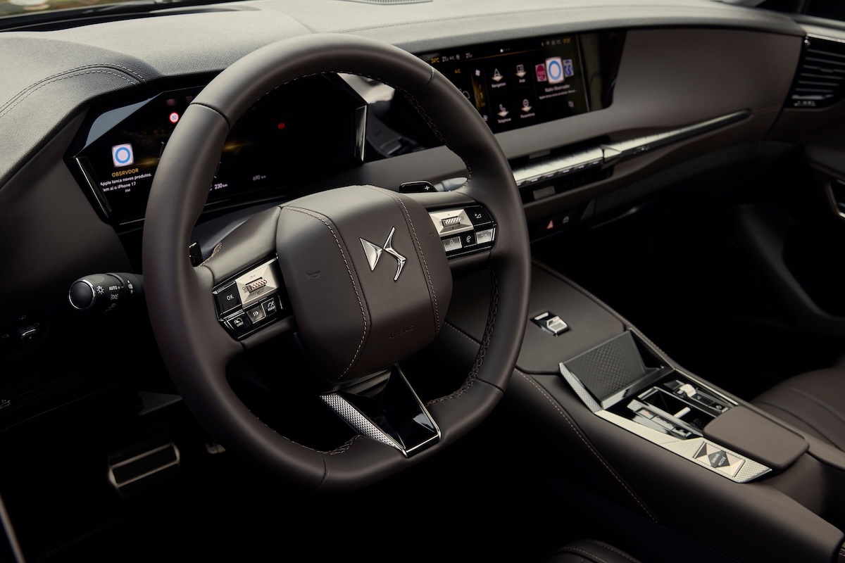 La cura del dettaglio è il vero manifesto del progetto. Nell’abitacolo la lavorazione Clous de Paris, le cuciture point-perle, il legno di frassino e la pelle Nappa Criollo Marrone con lavorazione a braccialetto raccontano la filosofia dell’artigianalità. L’allestimento PALLAS privilegia tessuti e tele DS di taglio classico; ÉTOILE alza l’asticella con Alcantara® e ampi rivestimenti in Nappa su plancia, pannelli porta e consolle. In entrambi i casi l’ambiente è ovattato, ricco ma sobrio, pensato per fare della qualità una presenza discreta e costante. Al buio, i DS MATRIX LED VISION(di serie su ÉTOILE) combinano tecnologia a matrice e funzione direzionale per un’illuminazione precisa che valorizza il nuovo frontale.