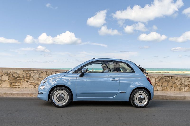 Il tributo di Fiat per il doppio anniversario è la nuova serie speciale Fiat 500 “Spiaggina ‘58” prodotta in edizione limitata in 1.958 unità e disponibile esclusivamente in con guarnizione cabrio, per godere appieno della bella stagione e del fascino di una storia scolpita nella memoria di tutti noi. E come si addice a una diva della “Dolce Vita”, la nuova serie speciale è “vestita” di una splendida livrea Azzurro Volare, con capote beige, impreziosita dalla linea di bellezza bianca e dai cerchi in lega da 16” dal disegno vintage.