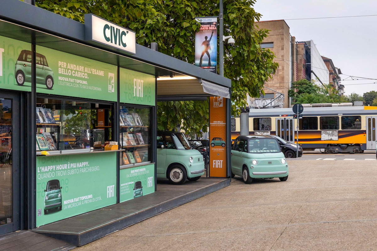 In particolare, la Topolino si distingue per il suo approccio non convenzionale, tanto nelle modalità di acquisto quanto nella promozione. Il progetto “TOP-NEWS” si svolge nelle iconiche edicole Civic di Milano, trasformate in spazi moderni dove si tengono eventi culturali e dibattiti. Le edicole, situate in zone strategiche della città, offrono ai cittadini un luogo di incontro e di scoperta, proprio come la Fiat Topolino offre una nuova visione della mobilità urbana.