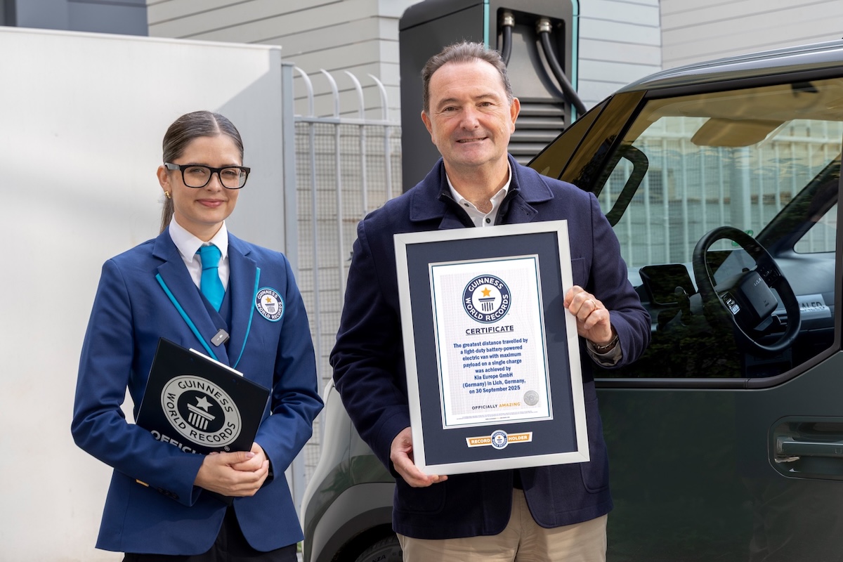 Kia ha scritto una pagina che va oltre lo slogan: 693,38 km con una sola ricarica e massimo carico utile a bordo, entrando nel GUINNESS WORLD RECORDS™ come “la distanza massima percorsa da un veicolo commerciale leggero elettrico, a carico utile massimo, con una singola ricarica”. È accaduto il 30 settembre 2025 su strade pubbliche a nord di Francoforte, in condizioni reali e con controlli indipendenti. Un risultato che sposta l’asticella della autonomia dall’immaginario al misurabile.