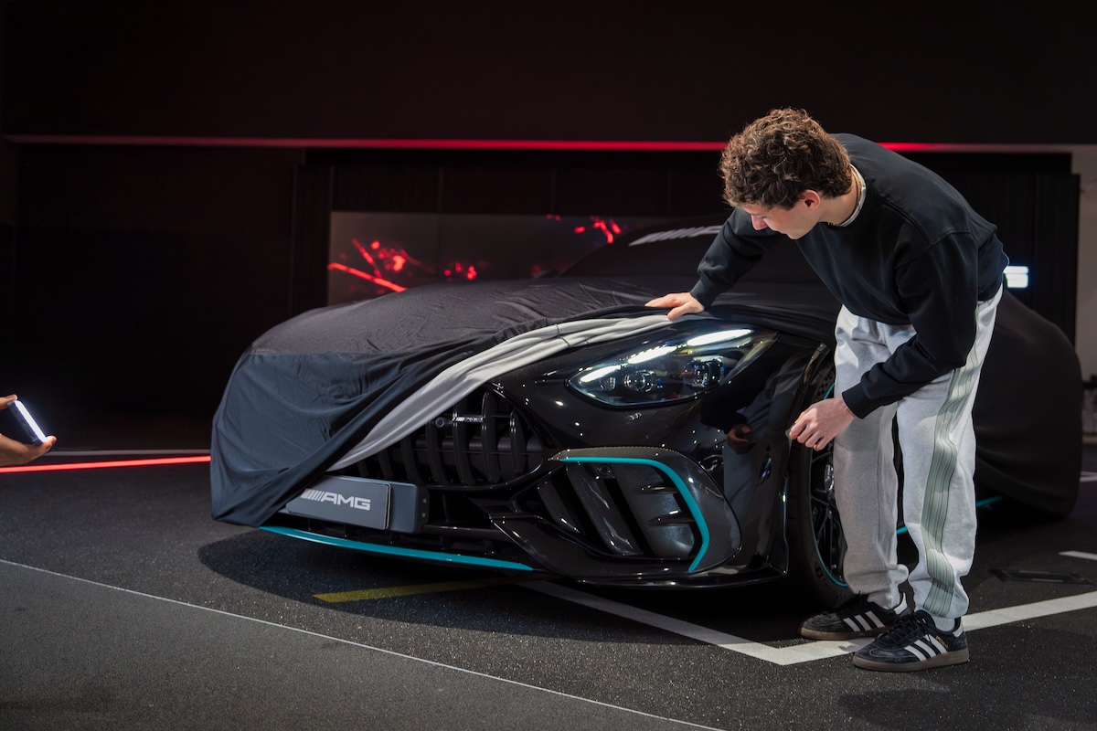 Il carbonio del pacchetto AMG Exterior, l’alettone posteriore fisso, l’impianto frenante carboceramico e l’assetto dedicato rendono questa GT un oggetto profondamente motorsport-oriented. Dentro, l’ambiente PETRONAS, i sedili AMG Performance e il volante AMG Performance raccontano un’idea chiara: questa non è una supercar da esibire, ma da vivere.