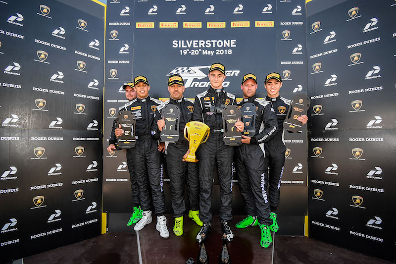 Quattro gare e quattro differenti vincitori nella Lamborghini Cup. Se a Monza era stato il turno di Supachai Weeraborwornpong (Team Lazarus) e William Van Deyzen (Van der Horst Motorsport), in Inghilterra a dividersi i successi sono stati Joseph Collado (AGS Events) e Gerard Van der Horst, con quest'ultimo in Gara 2 primo davanti allo stesso Collado e al compagno di squadra Van Deyzen.