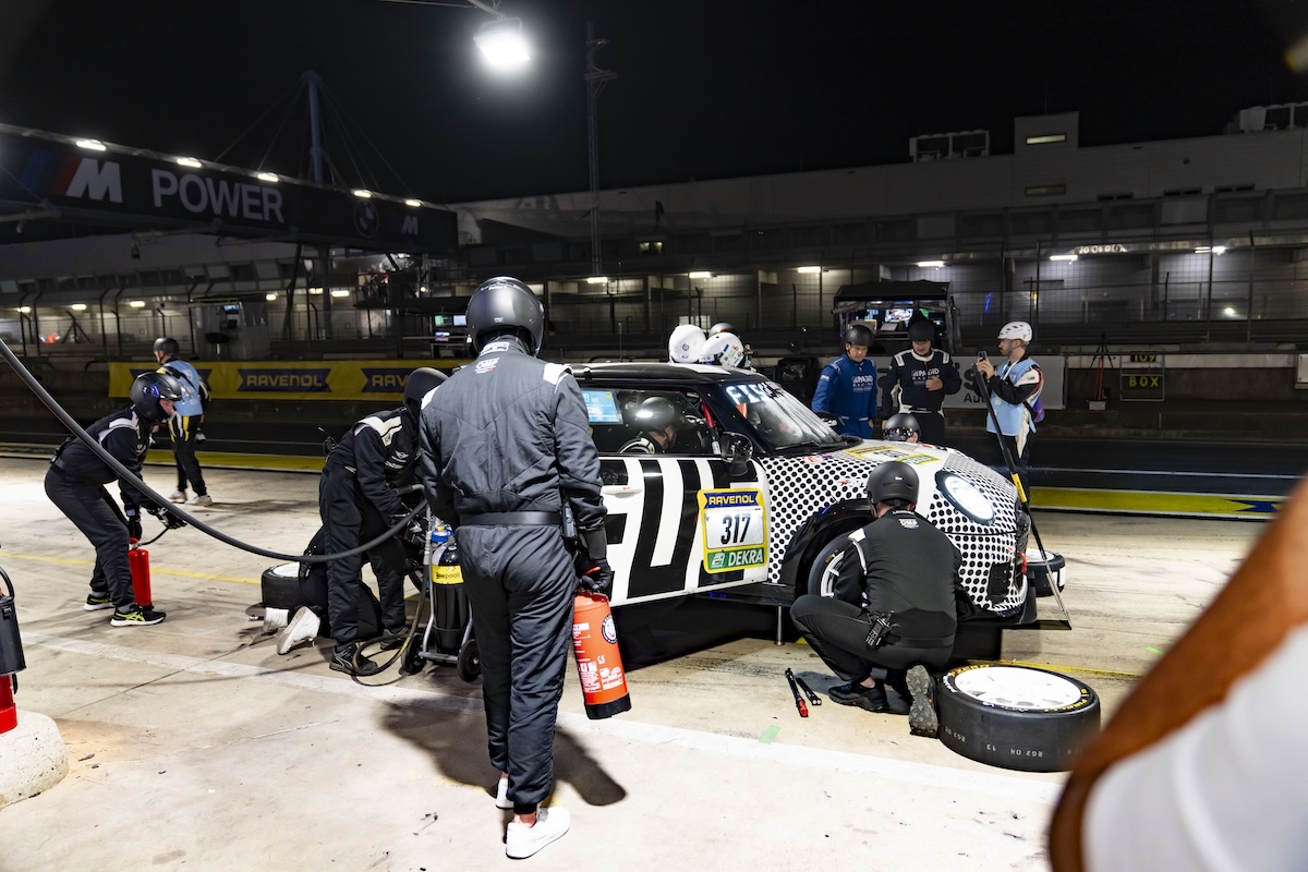 Dopo il primo stint di gara, tutto sembrava procedere per il meglio. Ma alle prime ore del pomeriggio di sabato un guasto elettrico ha costretto il team ai box. Una battuta d’arresto che poteva compromettere l’intera strategia, ma che invece ha rivelato tutto il carattere della squadra. Alle 19:45 la MINI è tornata in pista, e da lì in poi è iniziata una rimonta che ha dell’incredibile: oltre 60 posizioni recuperate nella classifica generale, mentre il cielo si faceva sempre più scuro e le temperature scendevano.