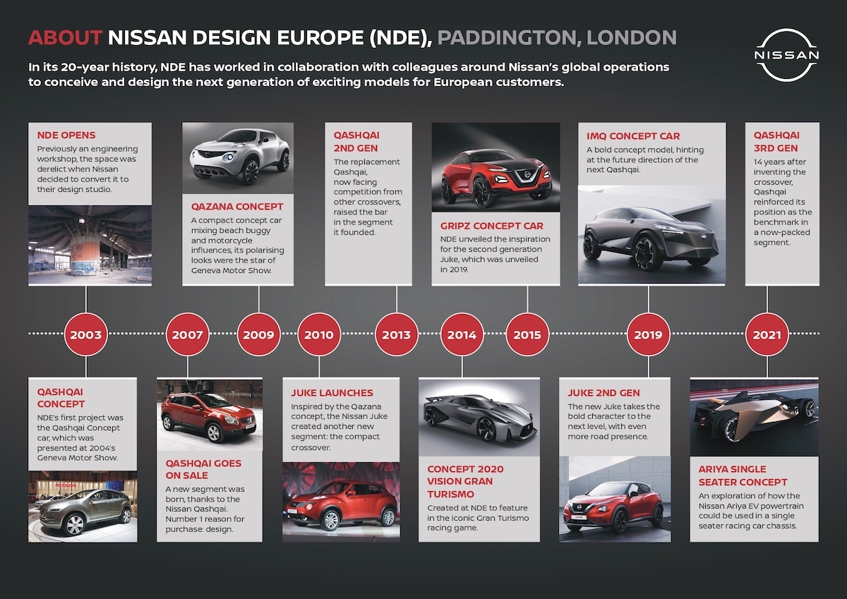 L’annuncio coincide con le celebrazioni di due anniversari Nissan – 20 anni del Nissan Design Europe (NDE); 35 anni del Nissan Technical Centre Europe (NTCE) – e il lancio di importanti novità.