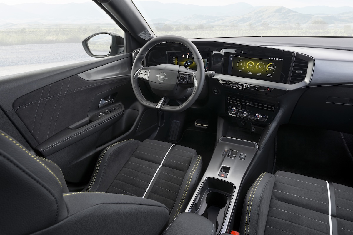 Se fuori la Opel Mokka GSE parla il linguaggio del rally, dentro si presenta come un’elettrica sportiva matura, pensata per l’uso quotidiano. I sedili GSE Performance in Alcantara, con poggiatesta integrato e cuciture gialle, avvolgono guidatore e passeggero e li “agganciano” all’auto in curva. Una sottile linea bianca al centro dei rivestimenti firma la grafica e crea un effetto tridimensionale che richiama il mondo racing senza scadere nell’eccesso.
