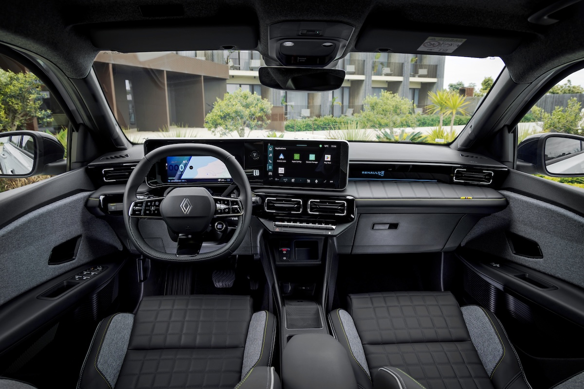 Per chi invece predilige un ambiente distintivo dove sportività e raffinatezza convivono, la versione Iconic rappresenta il vertice dell'eleganza contemporanea. Qui i sedili combinano un classico tessuto pied-de-poule con cuciture gialle e un materiale TEP in parte riciclato e bio-sourced. Il giallo diventa il filo conduttore che accende l'abitacolo, protagonista anche dei motivi a cinturino d'orologio che decorano sedili e plancia. A impreziosire il tutto c'è un tocco di classe tecnologica: il logo "Renault 4" inciso al laser e retroilluminato sulla plancia.