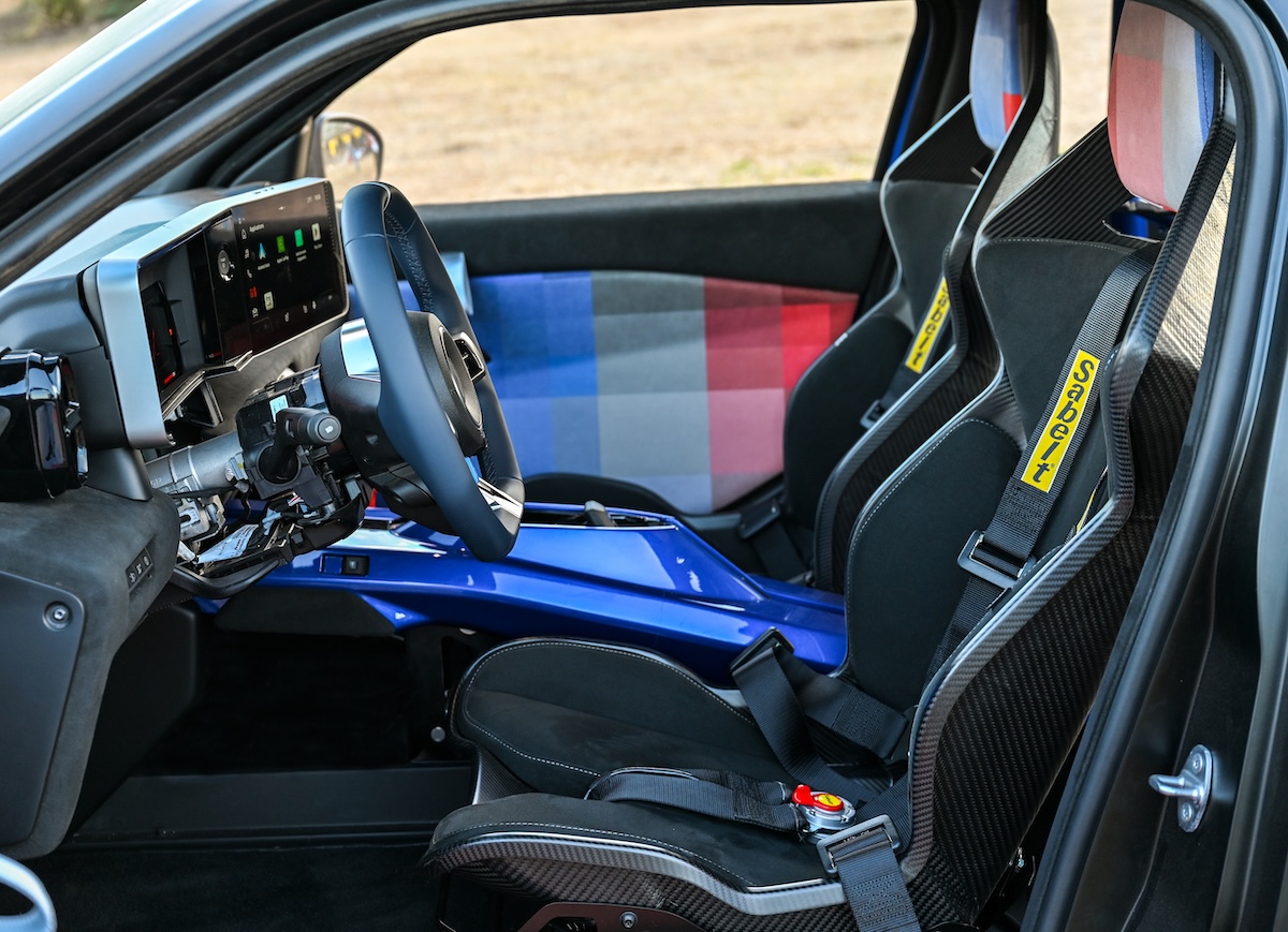 Dietro la silhouette esuberante, c’è un progetto votato alla sostanza. I team Alpine hanno creato una piattaforma su misura in alluminio, irrigidita da elementi in carbonio, con carrozzeria interamente in fibra che pesa meno di 100 kg. Il risultato è un’auto sotto i 1.450 kg, con distribuzione dei pesi 43/57 e un rapporto peso/potenza di 2,5 kg/CV. La scelta tecnica più audace, però, è nascosta dove meno te l’aspetti: motori nelle ruote posteriori. Questa architettura eroga 2×204 kW, l’equivalente di 555 CV e 4.800 Nm disponibili con immediatezza quasi brutale, mentre il controllo separato delle ruote moltiplica l’agilità con un torque vectoring “nativo”. Le sospensioni a doppi triangoli assicurano direzionalità chirurgica; la spinta, invece, racconta numeri da copertina: 0-100 in 3,5 secondi. Non è un dato, è una dichiarazione d’intenti.