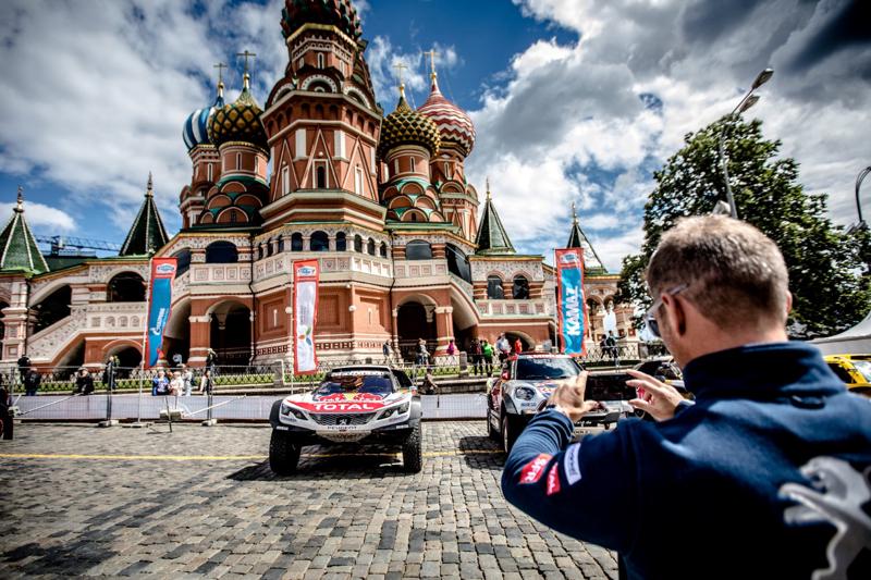 Sta salendo la tensione, visto che nel cerimoniale di inizio di questa sera per il Silk Way Rally saranno presenti le tre Peugeot DKR ai nastri di partenza nella famosa Piazza Rossa di Mosca.