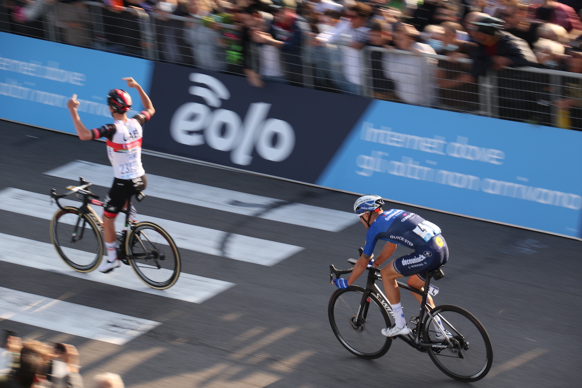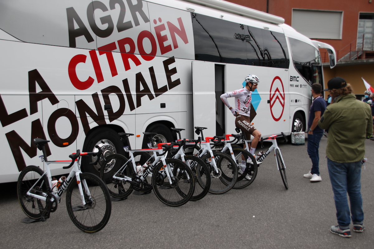 Giungiamo così in tempo per assistere alla volata finale a Bergamo. Il pubblico è tutto per il bergamasco Fausto Masanda che in volata non riesce a sopravanzare il fortissimo sloveno Tadej Pogacar ma il boato e l’euforia non si placa per incitare gli altri con giungono sgranati. La fatica non è terminata per tutti, seguiamo ancora i meccanici dell’AG2R Citroën Team che, con una rapidità sbalorditiva, smontano le ruote dalle biciclette per riporle nel camion. La vittoria non è stata raggiunta questa volta, ma il team sa che non tarderà ad arrivare.