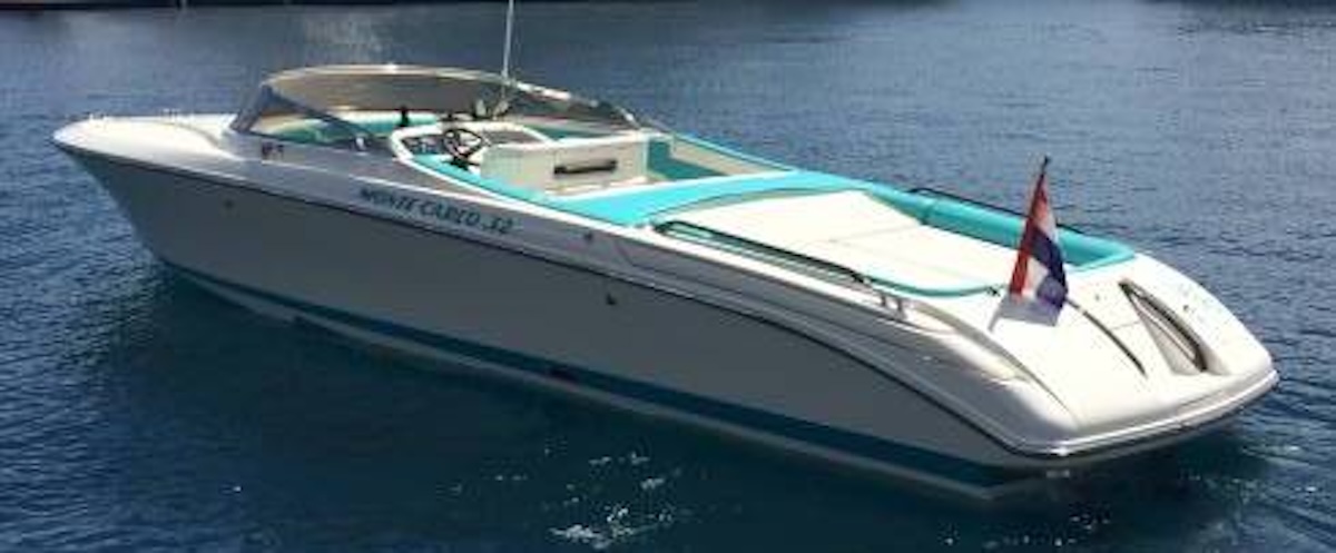 Non c’è solo nostalgia, ma anche adrenalina pura. Il Monte Carlo Offshorer 32’ racconta l’eccellenza europea nell’offshore di alta gamma: scafo in vetroresina, carena a gradini per aumentare la stabilità, motori centrali per abbassare il baricentro e rendere più precisa la guida ad alte velocità. Frutto del lavoro di tecnici come Cal Connel e Bob Hobbs, prodotto a Ventimiglia all’interno dei Boat Center Riva, questo 32 piedi spingeva oltre i 55 nodi già nella configurazione standard, diventando un riferimento per chi cercava prestazioni e finiture da gran turismo del mare.