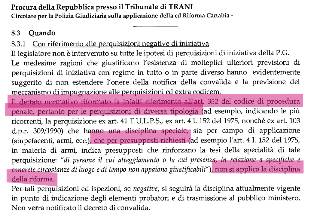 ESTRATTO DELLA DIRETTIVA DELLA PROCURA DI TRANI