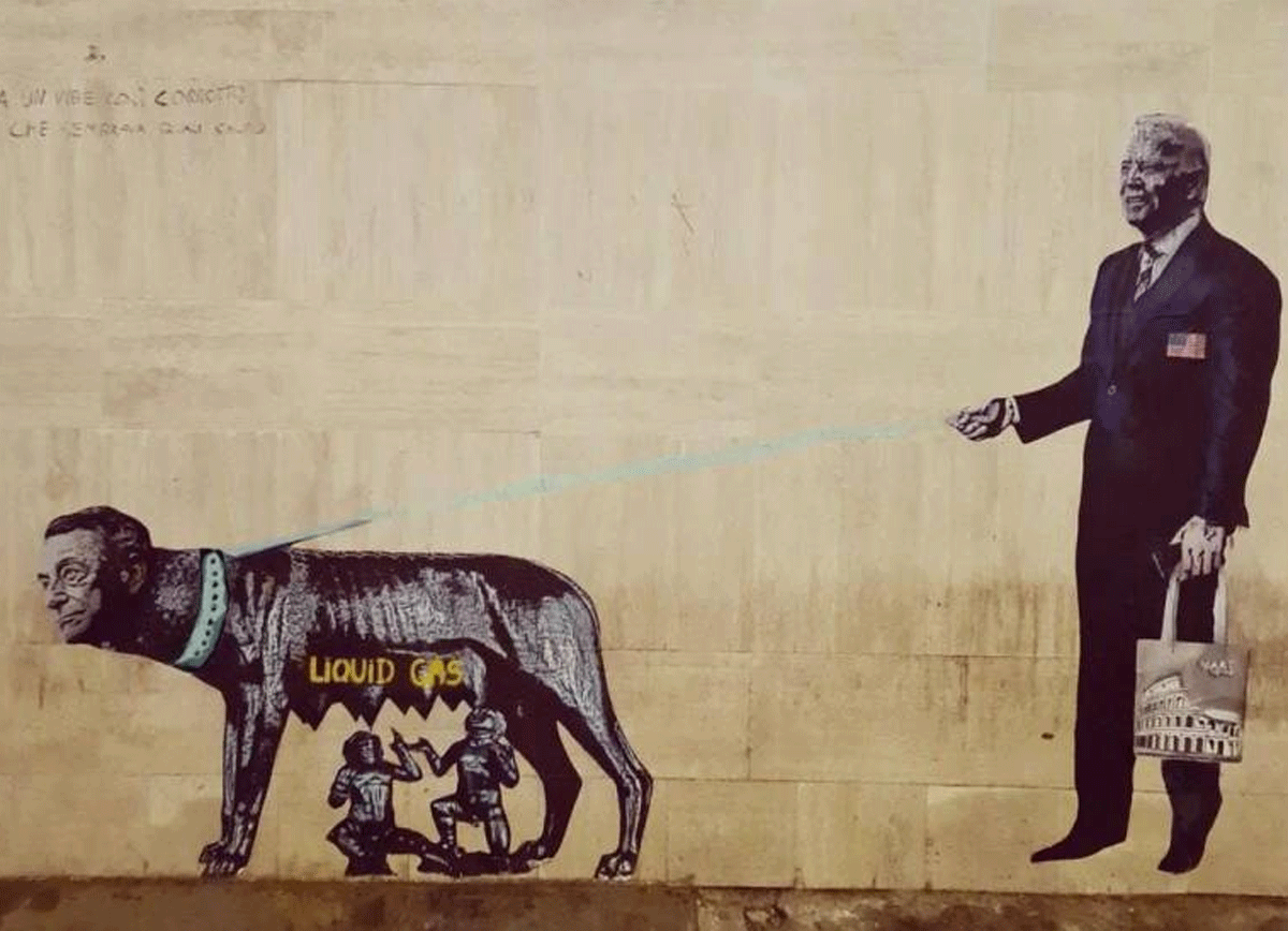 Claudio Cominardi, deputato e tesoriere del Movimento 5 Stelle, ha pubblicato sul proprio profilo Instagram una foto davvero clamorosa. Un vero e proprio attacco a Mario Draghi: il premier sarebbe un servo di Joe Biden. Nell'immagine è raffigurata la testa del presidente del Consiglio sul corpo della lupa capitolina, tenuta al guinzaglio dal presidente degli Stati Uniti, che allatta Romolo e Remo. Sulle mammelle compare inoltre la scritta "Liquid gas".