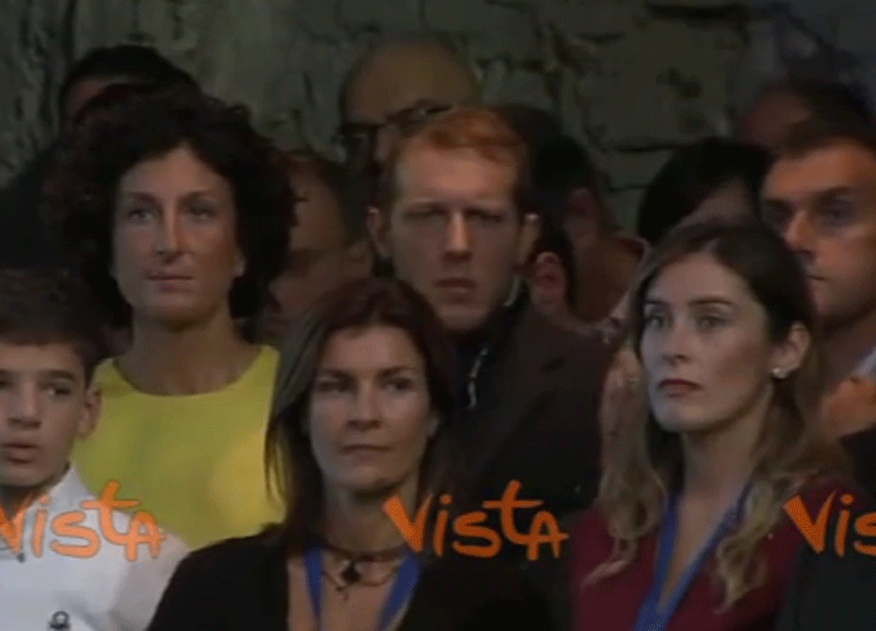 Agnese Renzi e Maria Elena Boschi vicine ascoltano l'intervento del premier alla Leopolda.
