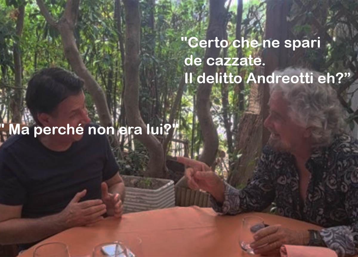 Beppe Grillo scherza con Conte sulla sua gaffe sul delitto Matteotti che diventa “Andreotti”, la vignetta di Yogananda Paramahnsa