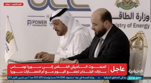 Damasco, 29 mag. (askanews) – L’inviato speciale statunitense per la Siria si fa fotografare davanti a una bandiera americana nel giardino della residenza dell’ambasciatore statunitense a Damasco, insieme al ministro degli Esteri siriano Asaad al-Shaibani. L’arrivo di Thomas Barrack nella capitale siriana segna un nuovo passo nel riavvicinamento tra i due Paesi dopo la caduta di Bashar al-Assad, scrive Afp. E il nuovo passo è suggellato dalla firma di un accordo energetico da 7 miliardi di dollari con un consorzio di aziende provenienti da Stati Uniti, Qatar e Turchia per riabilitare il settore elettrico siriano devastato dalla guerra. La firma ha avuto luogo nel palazzo presidenziale di Damasco, alla presenza del presidente ad interim Ahmad al-Shareh e dell’inviato speciale Usa: “Insieme cambieremo la natura e il potere del mondo, a partire da qui”, ha commentato Barrack.