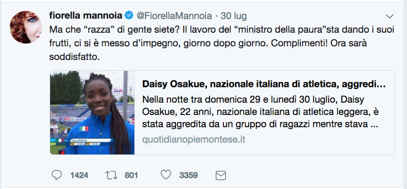 La fake su Daisy Osakue. Come si è “montata” passo passo. E la “speciale” classica dei migliori propalatori della #fakeDaisyOsakueattaccatadairazzisti
