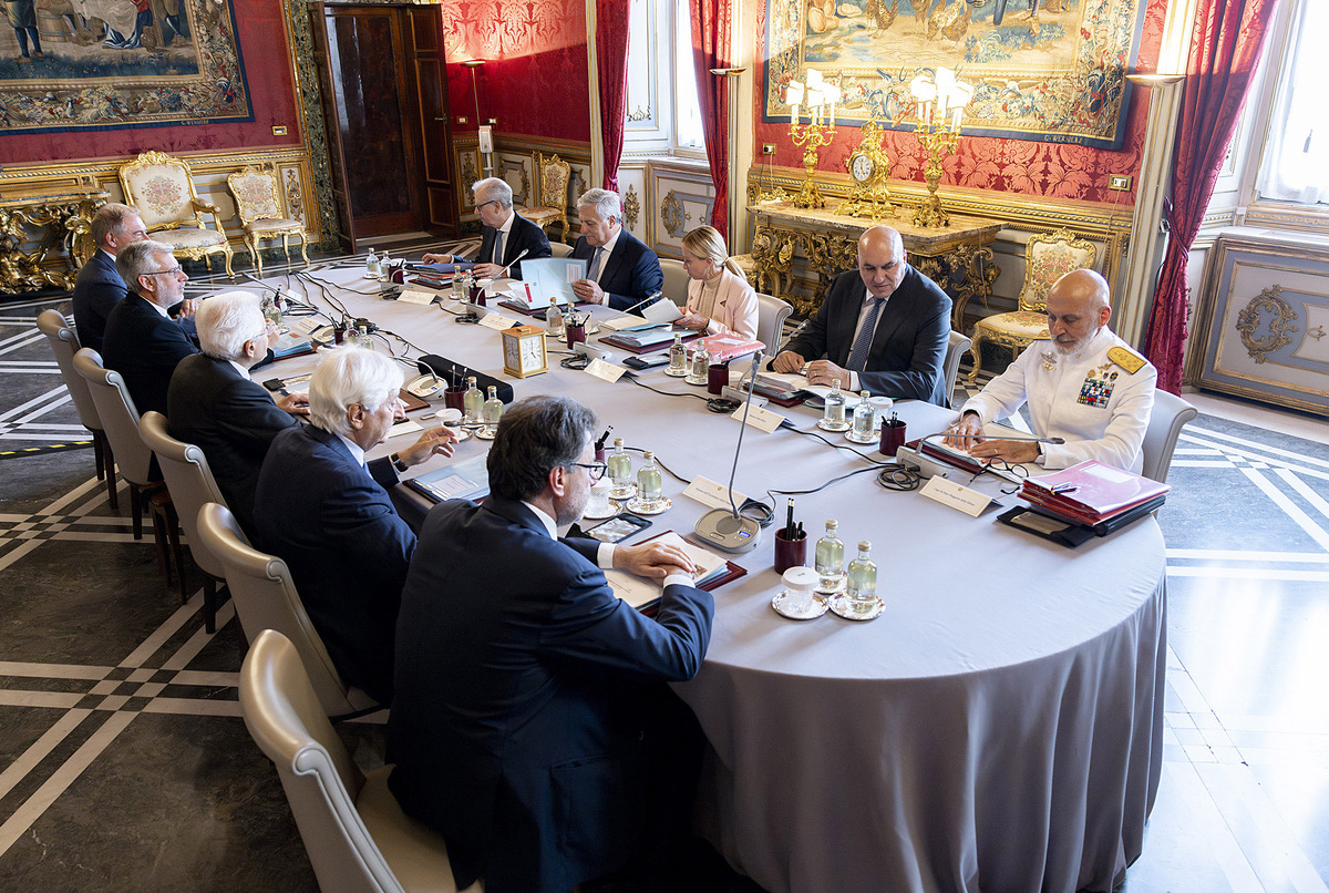 Si è riunito oggi, al Palazzo del Quirinale, il Consiglio supremo di difesa, presieduto dal presidente della Repubblica, Sergio Mattarella. A comunicarlo è una nota del Colle. Alla riunione hanno partecipato il presidente del Consiglio dei ministri, Giorgia Meloni, i ministri degli Esteri, Antonio Tajani, della Difesa, Guido Crosetto, dell’Economia, Giancarlo Giorgetti; delle Imprese e del Made in Italy, Adolfo Urso, e il capo di stato maggiore della Difesa, Giuseppe Cavo Dragone.