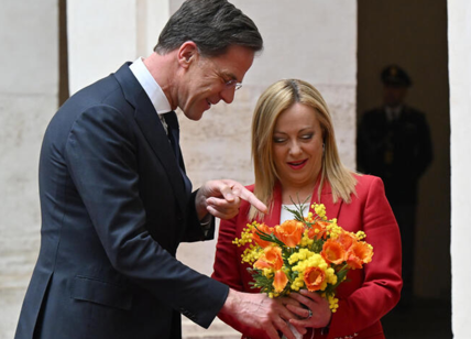 Meloni riceve Rutte a Palazzo Chigi: "Ue affronti il tema migranti"