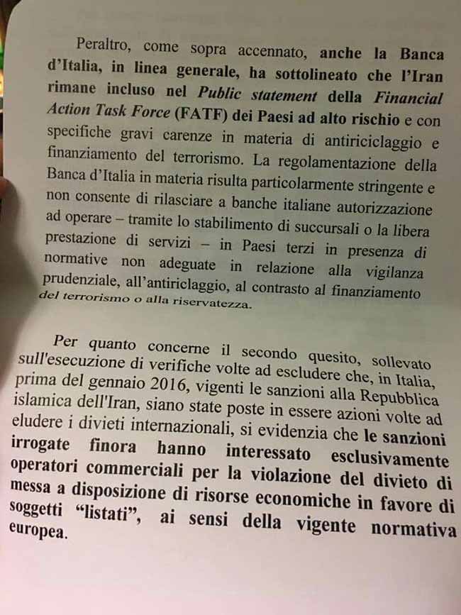 In ogni caso, nelle pieghe della risposta ci sono conferme esplosive. Bankitalia - dunque - ammette che l'Iran resta incluso nei paesi ad alto rischio, in particolare in tema di antiriciclaggio e finanziamento del terrorismo.