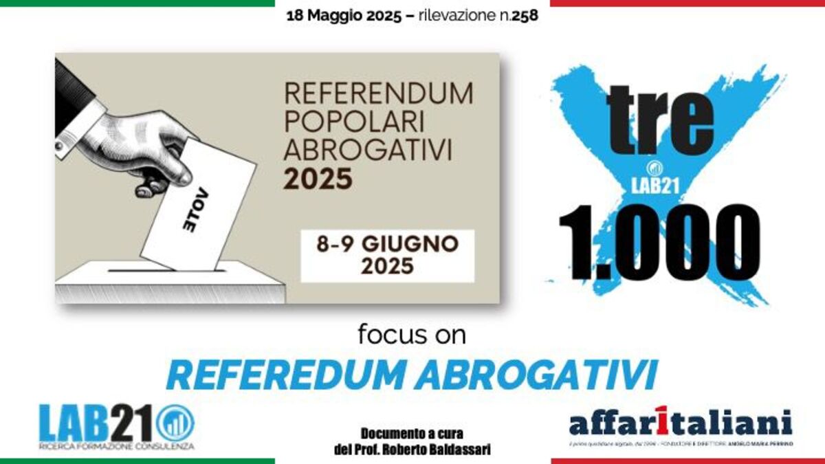 Un flop. Come ampiamente previsto. I referendum dell’8 e del 9 giugno, domenica e lunedì, non raggiungeranno il quorum, con una partecipazione bassissima, e quindi non saranno validi. E’ il dato principale del sondaggio realizzato per Affaritaliani.it da Roberto Baldassari, direttore generale dell’istituto demoscopico Lab21. L’affluenza alle urne stimata per i referendum è tra il 29,9 e il 33,9%. Chi dichiara che non si recherà ai seggi è tra il 66,1 e il 70,1%.