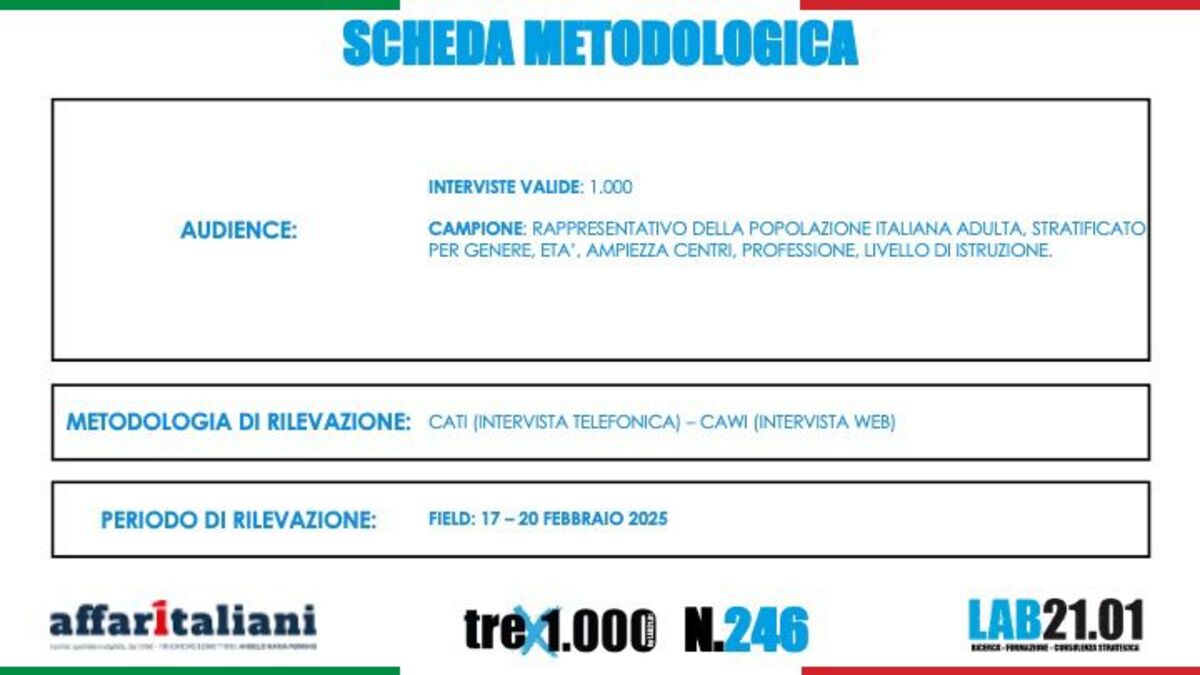 Tra i partiti, nelle intenzioni di voto, poche variazioni nel Centrodestra con la Lega che resta leggermente sopra Forza Italia. Pd in leggera crescita mentre perdono qualcosa il M5S e Alleanza Verdi Sinistra.